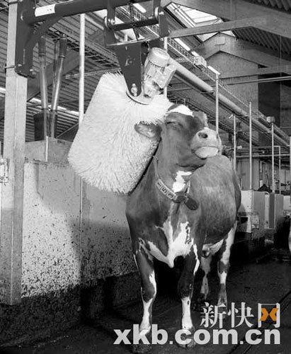 美国科学家近期也为这台机器做了实验,他们发现经常用这台机器洗澡的奶牛确实会变得更健康。经常使用该洗澡机的奶牛患乳腺炎的概率要比一般奶牛低34%。